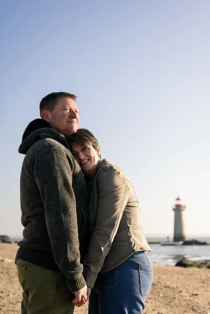 Pour ceux qui préfèrent la douceur d’une bulle privée, je me déplace chez vous. La séance photo couple à domicile ou un espace loué pour l’occasion permet de capter des gestes plus feutrés, des rires sur un canapé, une complicité sans filtre et sans regards extérieurs.